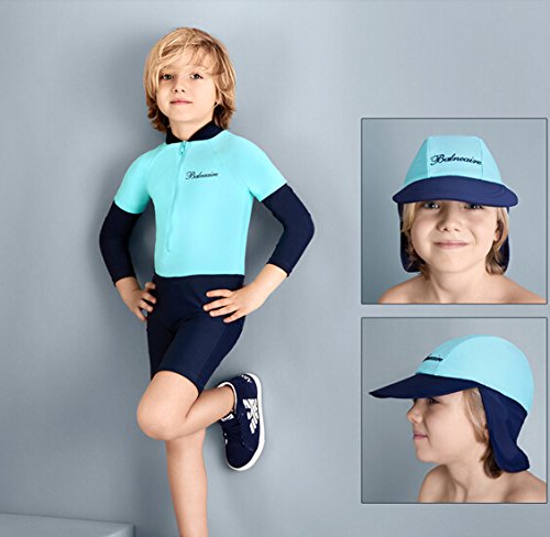 UVカット ラッシュガード & キャップ付 男の子 水着 (7-8(120cm-130cm), 男の子)