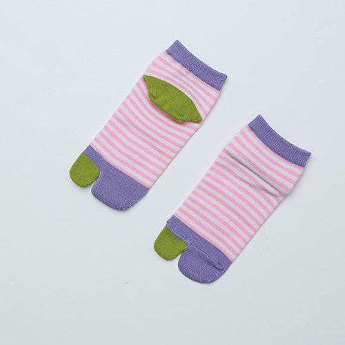 (靴下屋)kutsushitaya キッズ タビ指切替ボーダーソックス16〜18cm ピンク