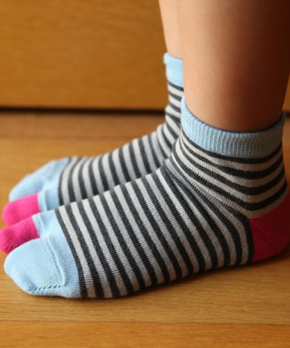 親子ペアで履けるよ☆ パパとママと同じ色で合わせてもいいし、わたし&ぼくだけのオリジナルカラーで決めても素敵だね! ●一人で上手に履けるデザイン● 色違いの指の袋に合わせて履けは、自然とかかともバッチリ合います! 自分一人で靴下がはけた--(^^)と こどもの自信につながります。