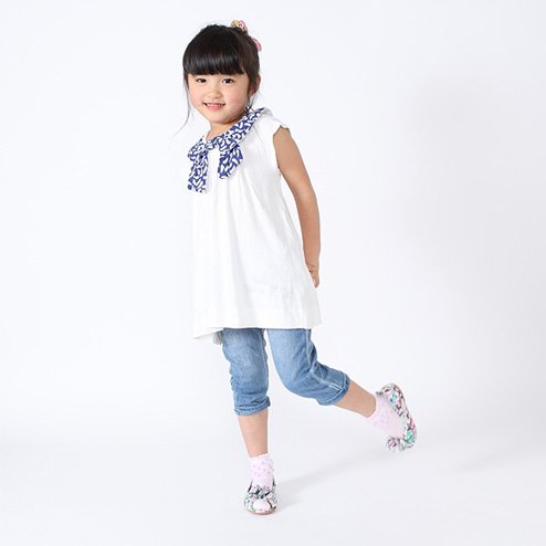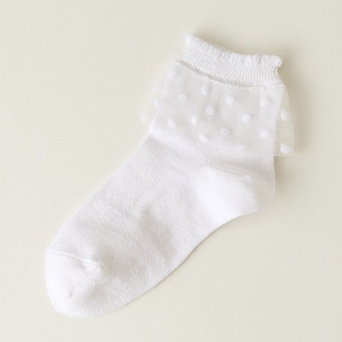 (靴下屋)kutsushitaya キッズ ドット柄チュールソックス 19〜21cm サラシ