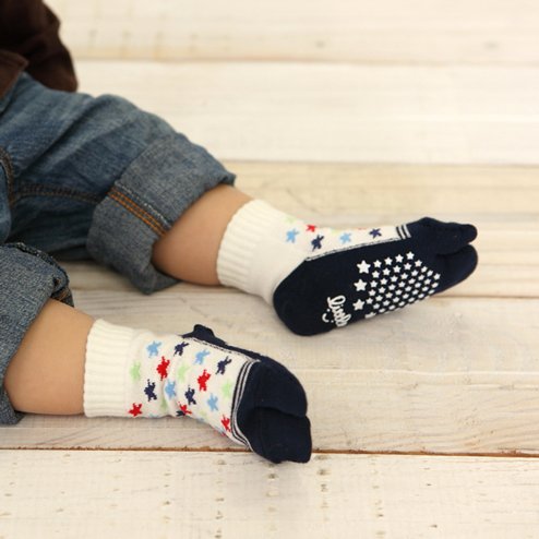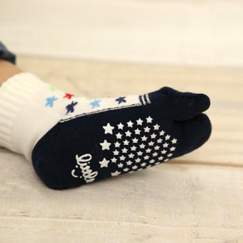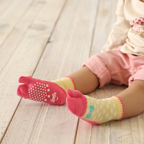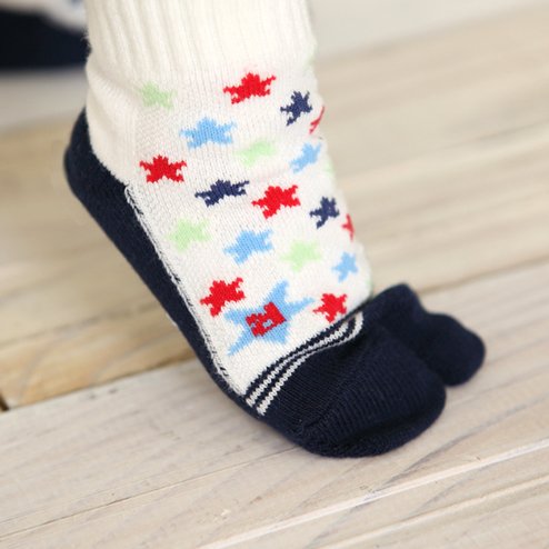 まだまだ歩き方が不安定な時期には、しっかりと足の指を使って歩く事が出来るタビソックスがオススメです。