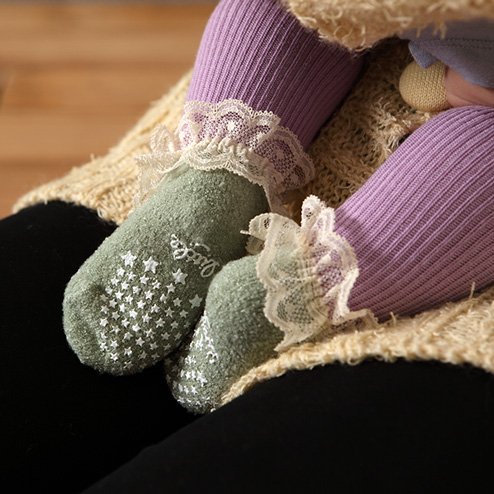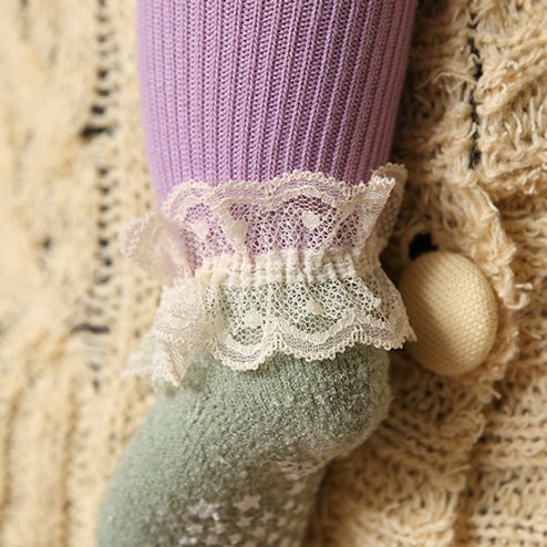 (靴下屋)kutsushitaya ベビーもこもこレース付ハイソックス 9〜12cm ライラック