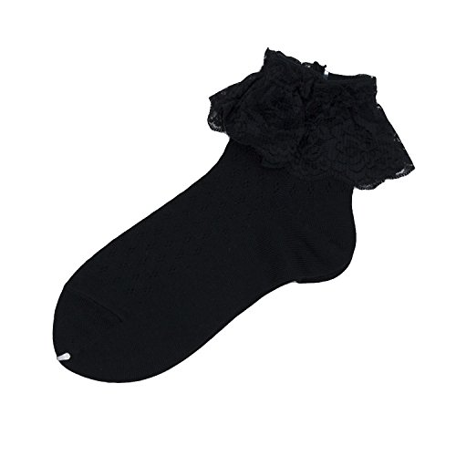(靴下屋)kutsushitaya キッズ メッシュレース付ソックス19〜21cm クロ