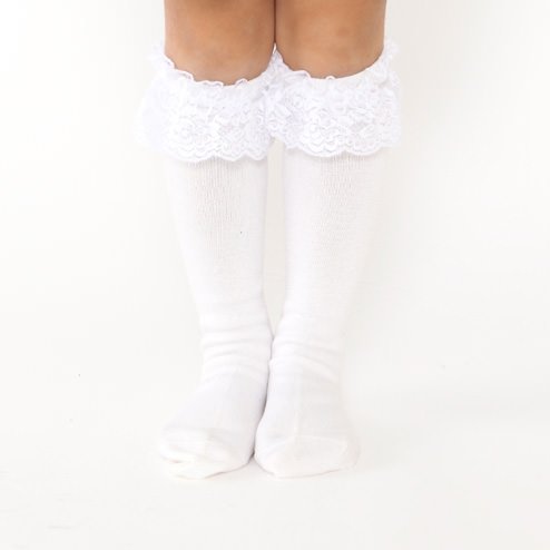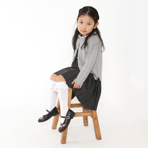 (靴下屋)kutsushitaya キッズ レース付ハイソックス16〜18cm クロ