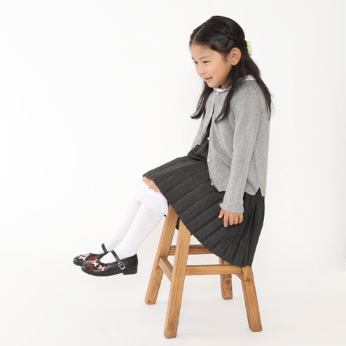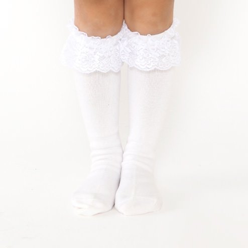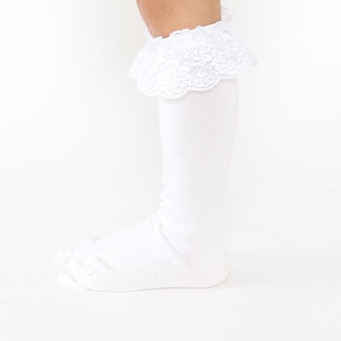 (靴下屋)kutsushitaya キッズ レース付ハイソックス19〜21cm クロ
