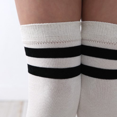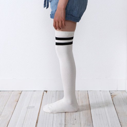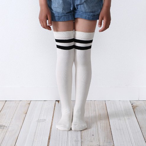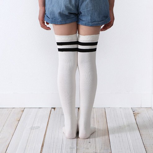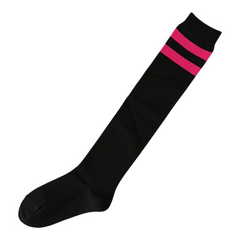 (靴下屋)kutsushitaya キッズラインニーハイソックス 16〜18cm クロ+ピンク