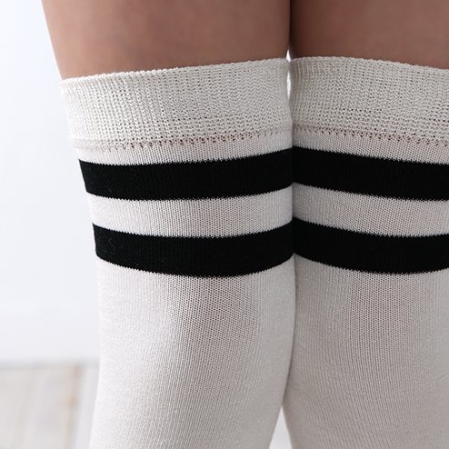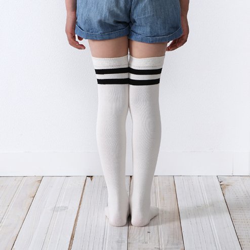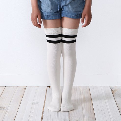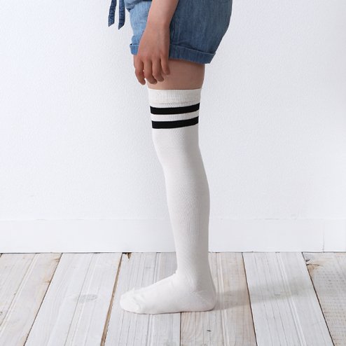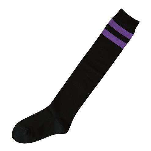 (靴下屋)kutsushitaya キッズラインニーハイソックス19〜21cm クロ+パープル