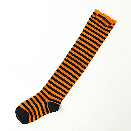 (靴下屋)kutsushitaya キッズ ボーダーニーハイソックス16〜18cm クロ+オレンジ