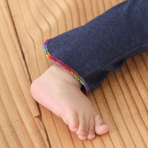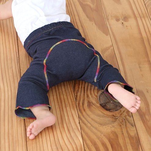 (靴下屋)kutsushitaya ◆人気◆ベビーモンキーパンツデニムタイプ80cm クロ+レインボー