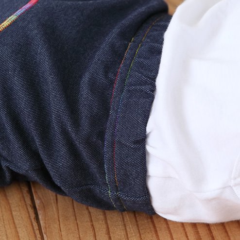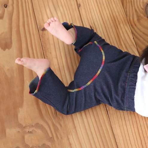 ベビー用(80cm)モンキーパンツのデニムタイプができました。お腹もすっぽりでおむつの部分がもたつかない作りになっています。パッキリした色がポイントなので男の子にも女の子にもおすすめです。