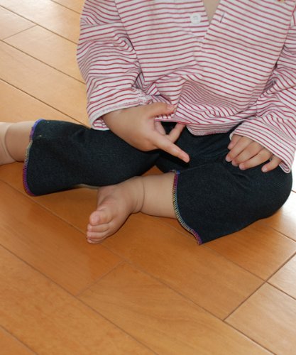 ベビー用(80cm)モンキーパンツのデニムタイプ。お腹もすっぽりでおむつの部分がもたつかない作りになっています。パッキリした色がポイントなので男の子にも女の子にもおすすめです。