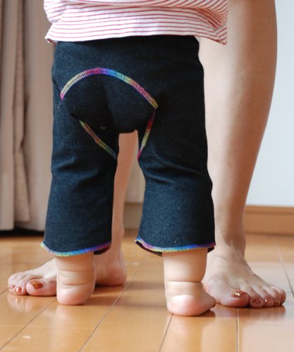 (靴下屋)kutsushitaya ベビーモンキーパンツデニムタイプ80cm インディゴ+レインボー