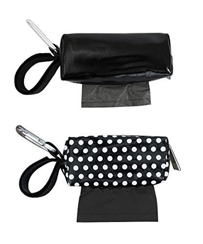Oh Baby Bags Diaper Bag Clip-On Dispensers with Disposable Bags for Dirty Diapers and Other Messes -Set of 2 - Solid Black and Black Dots [並行輸入品]