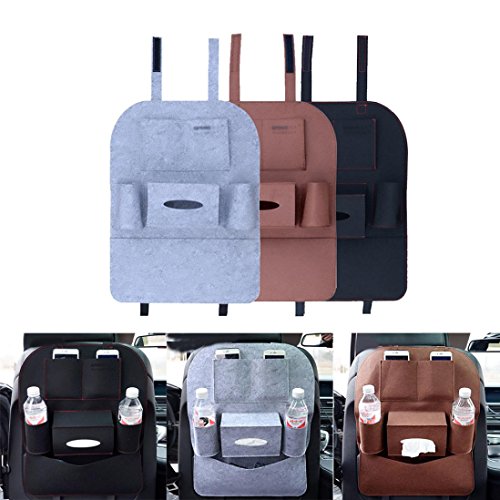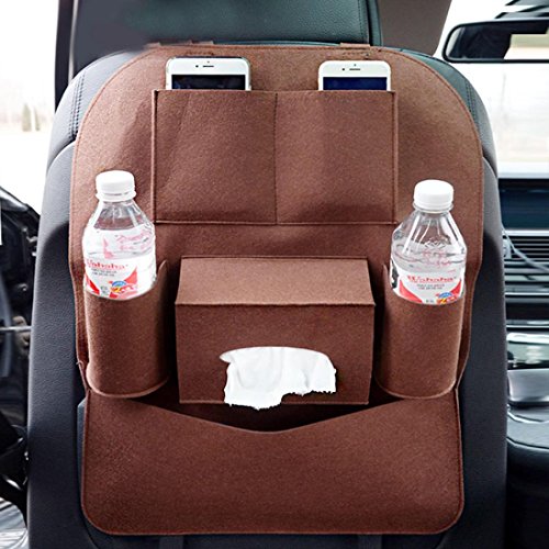 TangQI トランク収納ボックス カーポケット シートバック 車内小物整理 取付簡単 車用バックシートポケット 車内収納ケース 高容量 チャイルドシート 携帯電話収納可 カーアクセサリー 愛車のシートの傷、汚れ防止 (ブラウン)