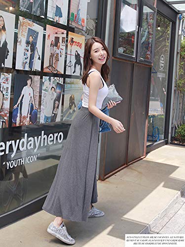 【TaoTech】 美脚 フレア ロングスカート 90cm丈 80% コットン 優しい履き心地 通気性 スウェット 無地 ウエストゴム ハイウエスト (ライトグレー, フリー)