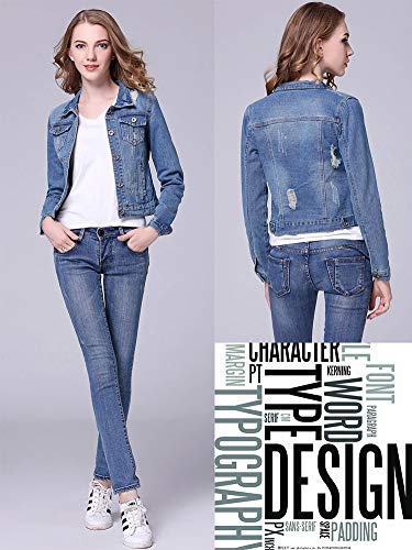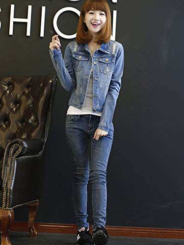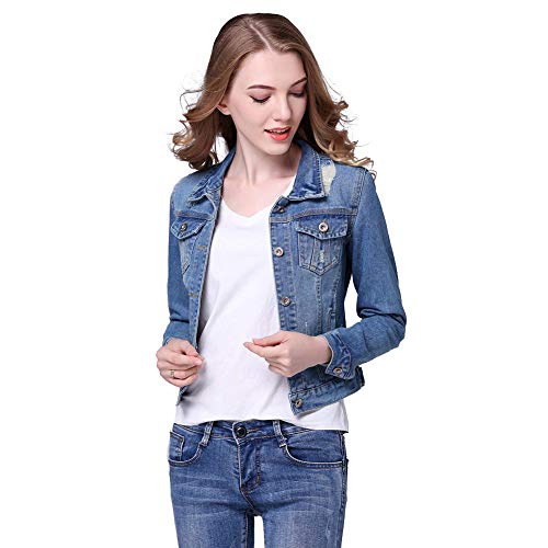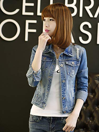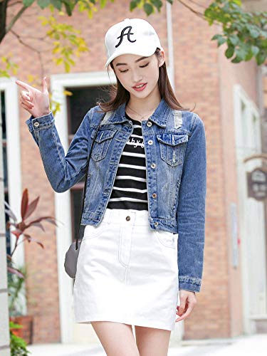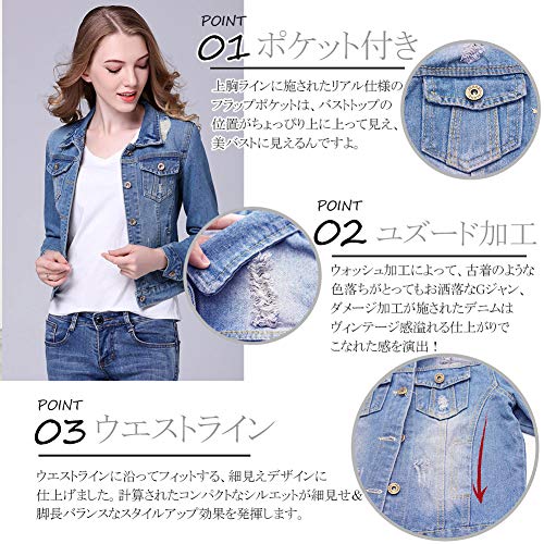 【TaoTech】 綿100% デニム ジャケット レディース ダメージ ショート丈 Gジャン ジージャン 大きいサイズ (ブルー, M)