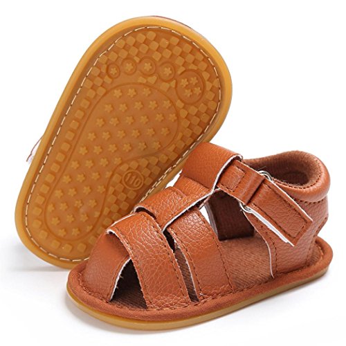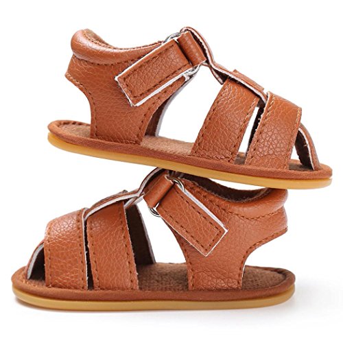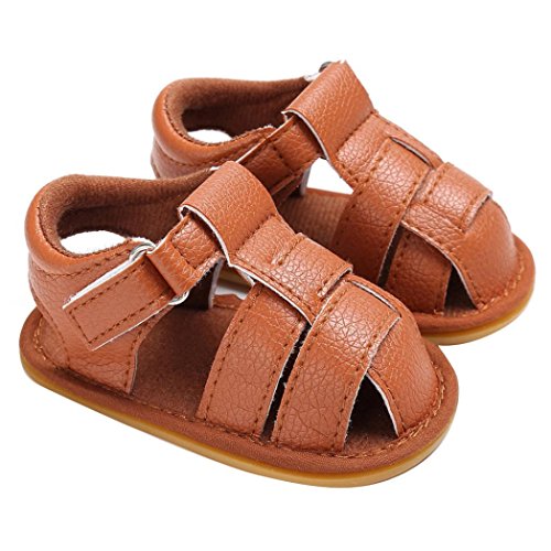 Tavodoo 子供靴 乳児靴 サンダル ベビーシューズ 男女兼用 マジックテープ つま先保護 履きやすい 滑り止め 通気性よく 可愛い 通園 通学 シンプル カジュアル キッズ 11-13CM (11cm, ブラウン)