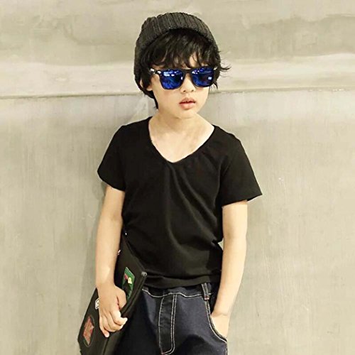 TavodooTシャツ Vネック 無地 野生のセクション 男の子 半袖 カジュアル おしゃれ 夏 人気 新品 キッズ 子供用 幼児 ベビー服 子供服 誕生日 プリンセス ブラック ホワイト (120cm, ブラック)