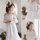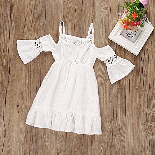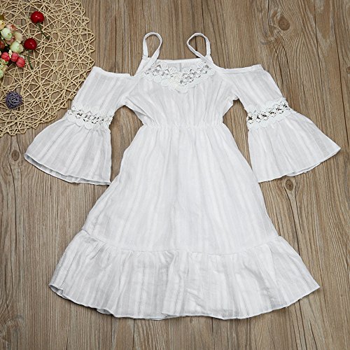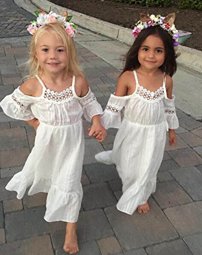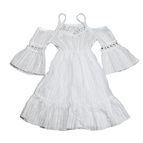 Tavodooドレス ワンピース ボヘミア風 肩見せ 半袖 夏 キッズ 女の子 ベビーガールズ お姫様 プリンセス 可愛い ベビー服 子供服 子供用 誕生日 子供の日 遊園地 結婚式 リゾート 旅行に 白 (105cm)
