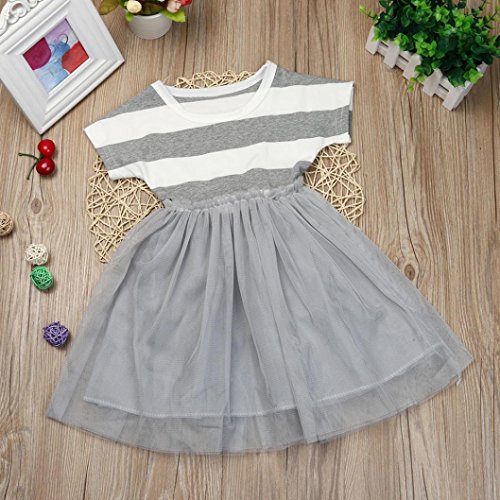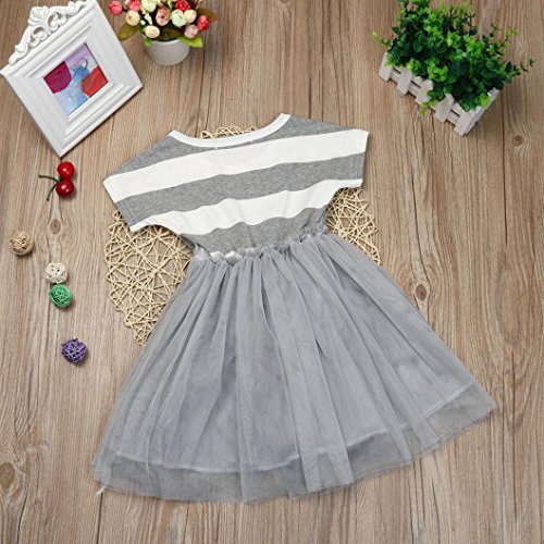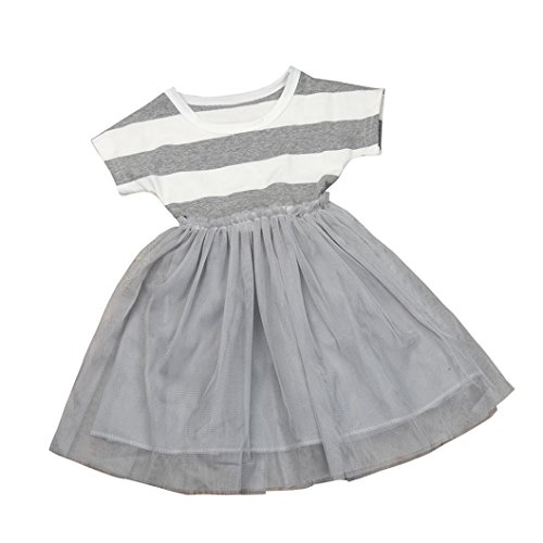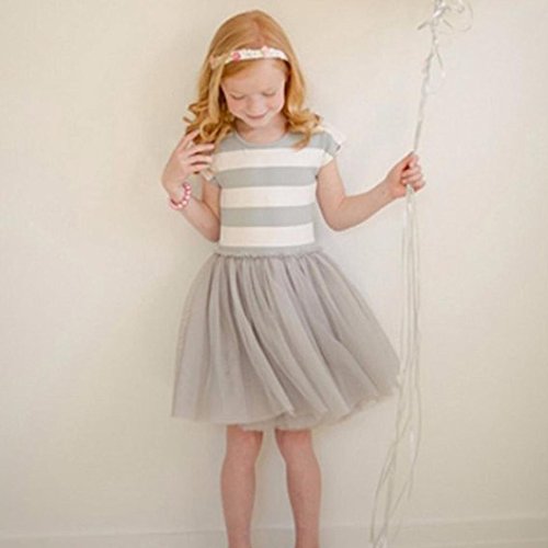 Tavodooドレス ワンピース チュールスカート 縞模様 夏 キッズ 女の子 ベビーガールズ フォーマル おしゃれ お姫様 プリンセス 可愛い ベビー服 子供服 子供用 誕生日 子供の日 結婚式 パーティーに グレー グリーン (120cm, グレー)