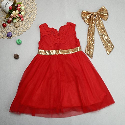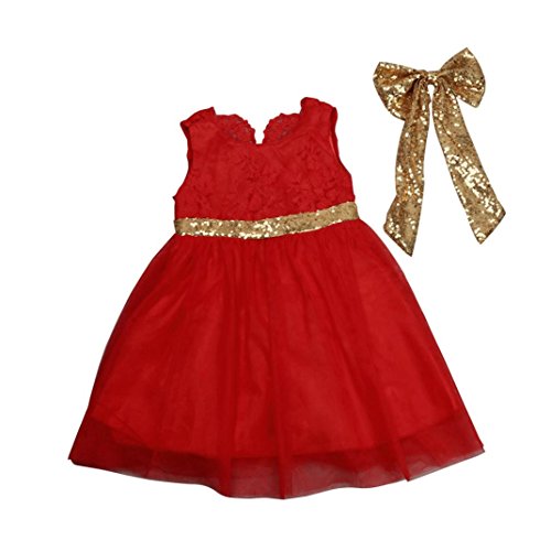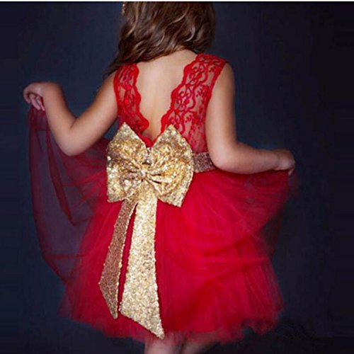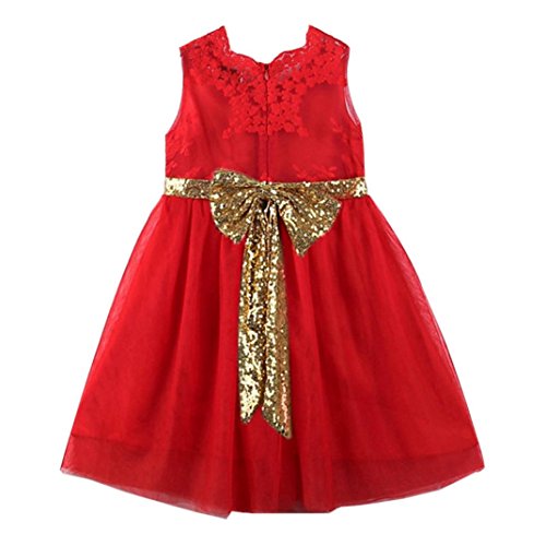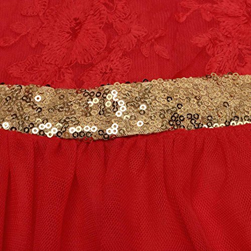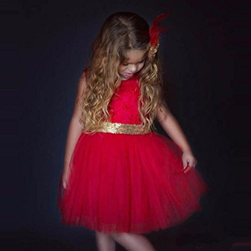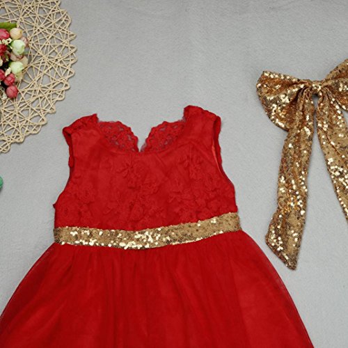 Tavodooドレス ワンピース チュールスカート レース リボン付き スパンコール 夏 キッズ 女の子 ベビーガールズ フォーマル おしゃれ お姫様 プリンセス 可愛い ベビー服 子供服 子供用 誕生日 子供の日 結婚式に ピンク ホワイト ブルー レッド (110cm, レッド)