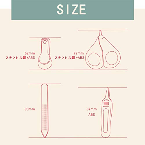 - [セット内容・付属品] 新生児用ハサミ、クリップ型爪切り、爪やすり、鼻用ピンセット、収納ケース。