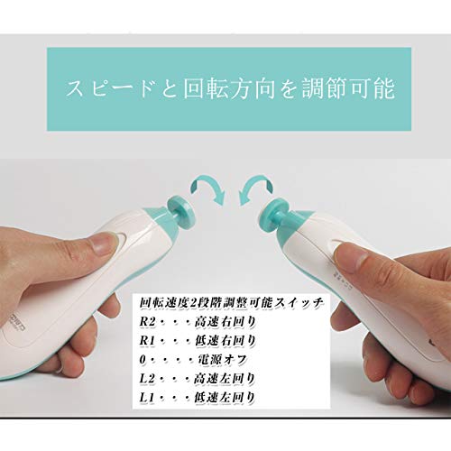 - 【モード調節機能】スピードと回転方向を調節可能。スピードモードは高速と低速の2段階があります。爪の硬さによって調節できます。また、 回転方向を左右に切り替え可能で、方向を気にせず、どちらの手でも気軽にお使いいただけます。