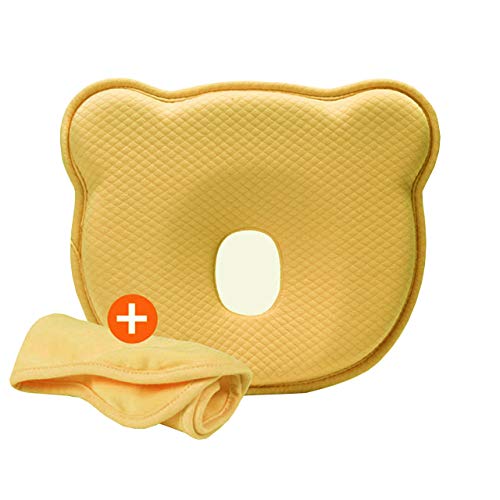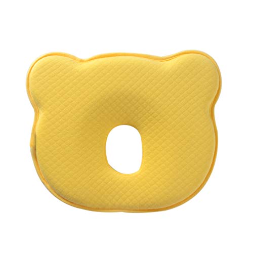 Te Fit ベビー枕 赤ちゃん 枕 ベビーピロー 赤ちゃん枕 絶壁防止枕 頭の形 新生児 寝姿を矯正 汗取り 快眠 小熊型 高品質の素材 低反発ピロー 100% 綿 無添加 男女兼用 通気枕 (イエロー)