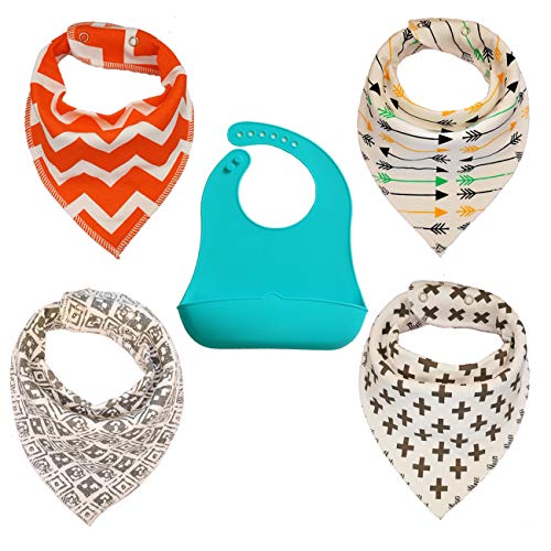 Te Fiti ベビー スタイ ビブ 三角 よだれかけ 食事用 エプロン 保育園にもピッタリ シリコン100% の油が落ちるシリコンビブ 6ヵ月~3歳 柔らかい バンダナ型 サイズ調整可能 5枚セット