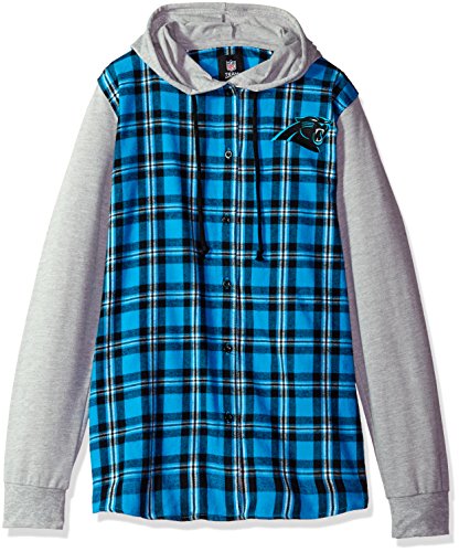 NFL Carolina Panthers女性NFLレディース軽量フランネルフード付きジャケット, Large