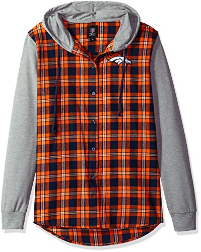 NFLデンバー・ブロンコスWomens NFLレディース軽量フランネルフード付きジャケット、XL、オレンジ