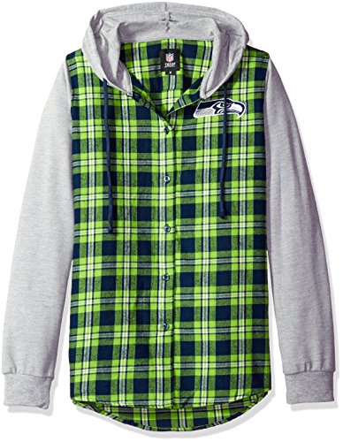 NFLシアトルシーホークス女性NFLレディース軽量フランネルフード付きジャケット、ミディアム