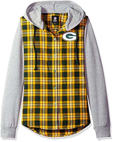 NFLグリーンベイパッカーズ女性NFLレディース軽量フランネルフード付きジャケット、スモール