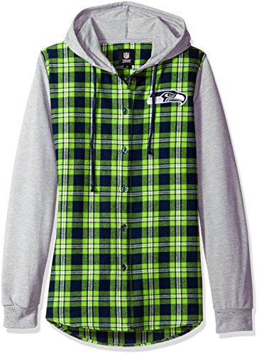 NFLシアトルシーホークス女性NFLレディース軽量フランネルフード付きジャケット, Large