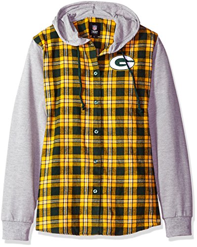 NFLグリーンベイパッカーズ女性NFLレディース軽量フランネルフード付きジャケット, Large