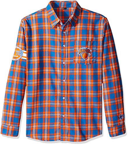 新しいYork Knicks Wordmark基本的なフランネルシャツ L ブルー