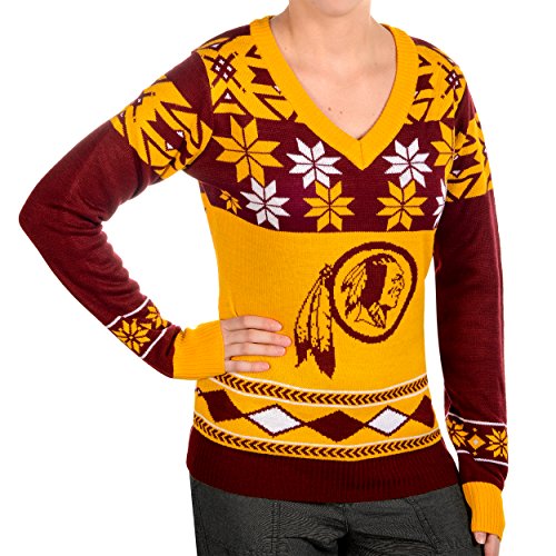 NFLレディースVネックセーター、ワシントンレッドスキンズ、Xラージ