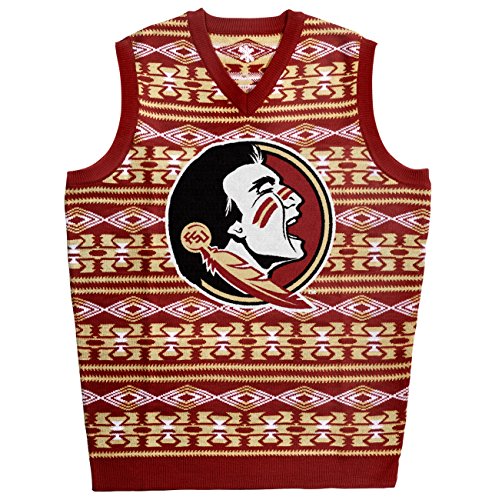 KLEW NCAA Florida State Seminoles醜いセーターベスト、スモール、レッド