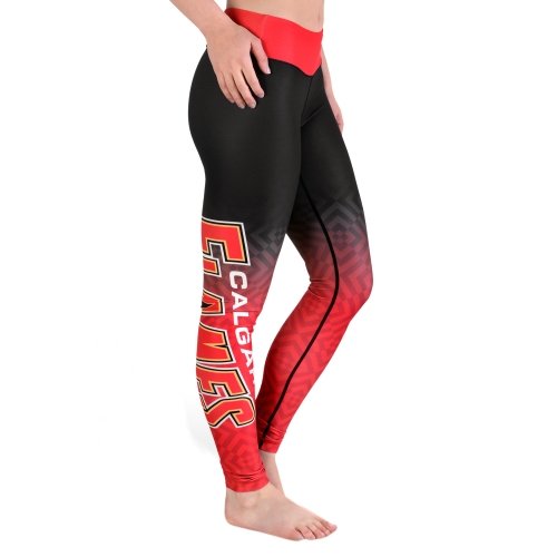 KLEW NHL Calgary Flamesレディースグラデーションプリントレギンス、赤、L