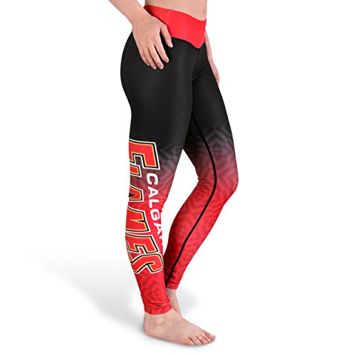 KLEW NHL Calgary Flamesレディースグラデーションプリントレギンス、レッド、ミディアム