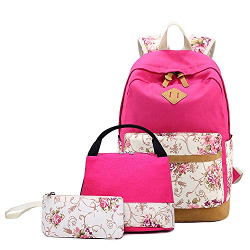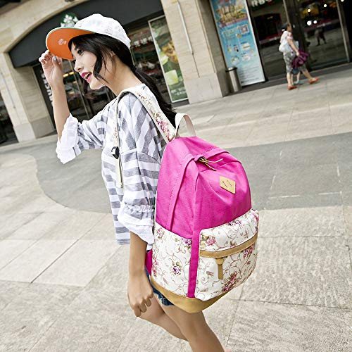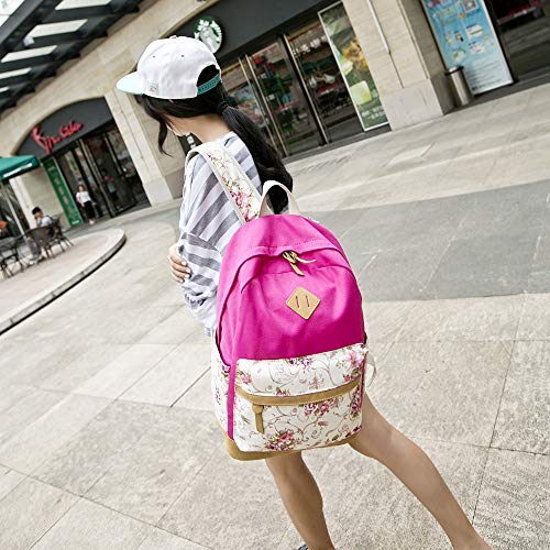 キャンバスバッグ 3点セット 多機能、SIMPLE DO リュックサック 学生バッグ 軽量 大容量 多機能 生徒 耐久性 通勤 レディース 人気 おしゃれ(ホットピンク)