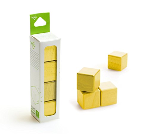 4 Piece Tegu Magnetic Wooden Block Cube Set, Yellow [並行輸入品]