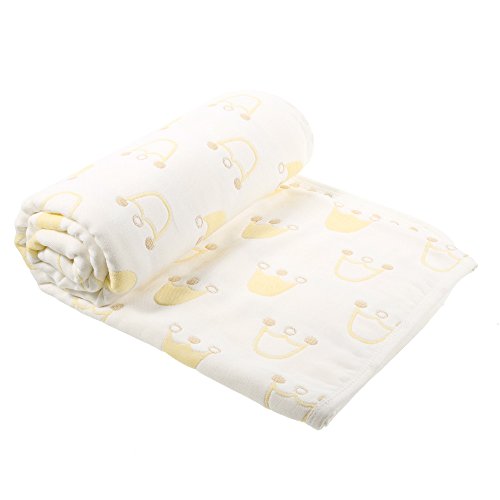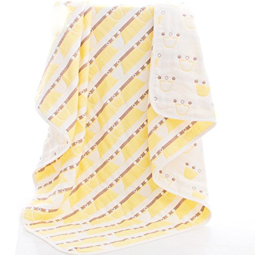 子供用 タオルケット 柔らかい肌触り 6重 100%綿ガーゼ ブランケット 通気性 吸水バスタオル ベビー 赤ちゃん (サイズ:110×110cm) (イエロー)