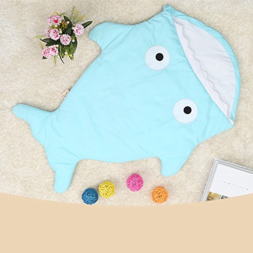 子供用 シュラフ ベビー おくるみ サメの形 寝袋 ブランケット 暖かい 春秋用 赤ちゃん対応 柔らかい肌触り (ブルー)
