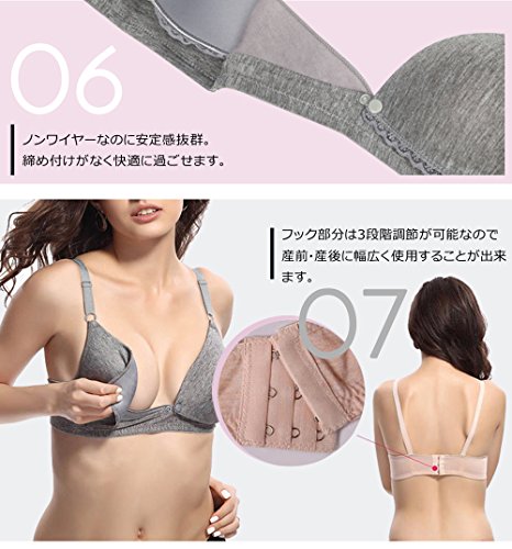 【特徴】 シンプルなデザインでバストの変化に対応し快適にサポートする産前産後兼用ブラ♪ フロントオープンタイプで、内側には脇からカップ中央に繋がる裏打ちがあるので授乳時もサポートしてくれます。 ノンワイヤーなので締め付けが少なく快適に過ごすことができます。 フック部分は3段階調節が可能なので産前・産後のアンダーバストの変化に対応しています。 【仕様】 品質:ナイロン、綿 スタイル:母乳育児用ブラジャー [34C] 胸囲:71cm - 75cm [36C] 胸囲:76cm - 80cm [38C] 胸囲:81cm - 85cm [40C] 胸囲:86cm以上