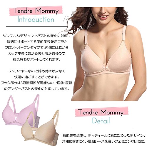 TendreMommy 授乳ブラジャー ノンワイヤー マタニティ 妊婦 前開き (38C, ピンク)
