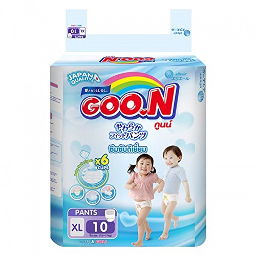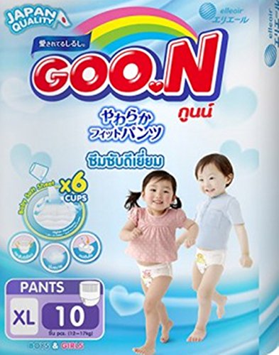 Baby Pant Diapers Goon, absorbs instantly to baby's skin dry at night.size XL 10 PC.