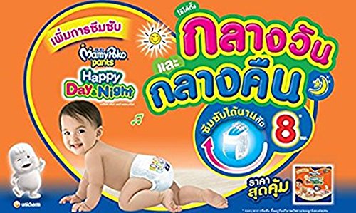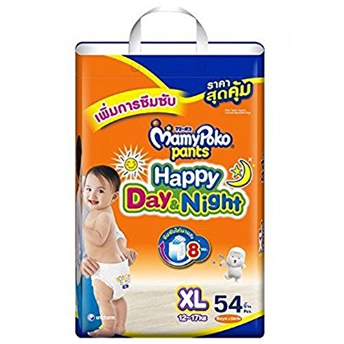 Mamy Poko Pants Happy Day&Night innovation from Japan,For boy&girl next step toddler 26-37 lb,Size XL 54 pieces,Extra soft and well fit.