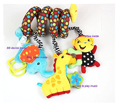 Specification Material: Plush fabric super Soft & Smooth Fleece Cloth. Size: length is approx. 8.5 inch. Color: multi-color as picture shown. Pattern: 3 cute animals with ring paper inside and play music. Gender: Unisex Age: for 0-3 years old baby. Package included: 1 piece baby cute crib hang. Features: 1.Easy to grasp. 2.Rattles hand bell ring noise when baby shake. 3.Soft handle. 4.Fun for baby to touch and easy to hold. 5.Pinch for a rattling sound. 6.Encourage baby to touch and explore. Notice: Please note that due to lighting effects, monitor's brightness / contrast settings etc, there could be some slight differences in the color tone of the pictures and the actual item.
