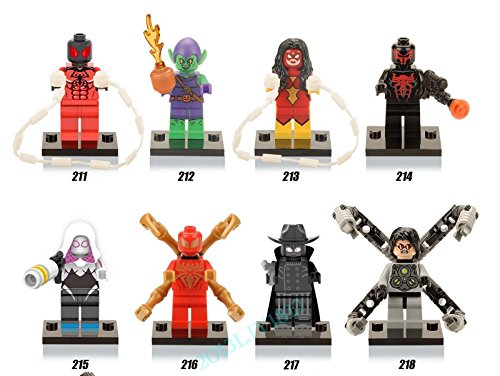 ホット8 xセットpcs LotミニフィギュアおもちゃDr。Octopus Goblin Ironスパイダーマン2099 Gwen